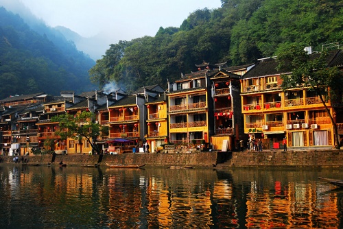 之后我們可以自由漫步在明清風(fēng)格的小石板街上,隨著飄來(lái)的姜糖味,步入那名俗一條街,你會(huì)感受到苗族人生活特色,滿街精致的銀飾,湘西獨(dú)有的純陽(yáng)之物朱砂,還有竹器,葫蘆絲的美妙音樂(lè)讓你如癡如醉,再嘗嘗當(dāng)?shù)氐奶厣〕?,保證終生難忘,最后沿著沱江向下走,乘坐別具特色的【農(nóng)家游船】,在歡聲笑語(yǔ)中我們慢慢離開(kāi)這座山中有水,水中有山,山中有城的詩(shī)情畫(huà)意的小城,結(jié)束鳳凰古城的休閑之旅! |